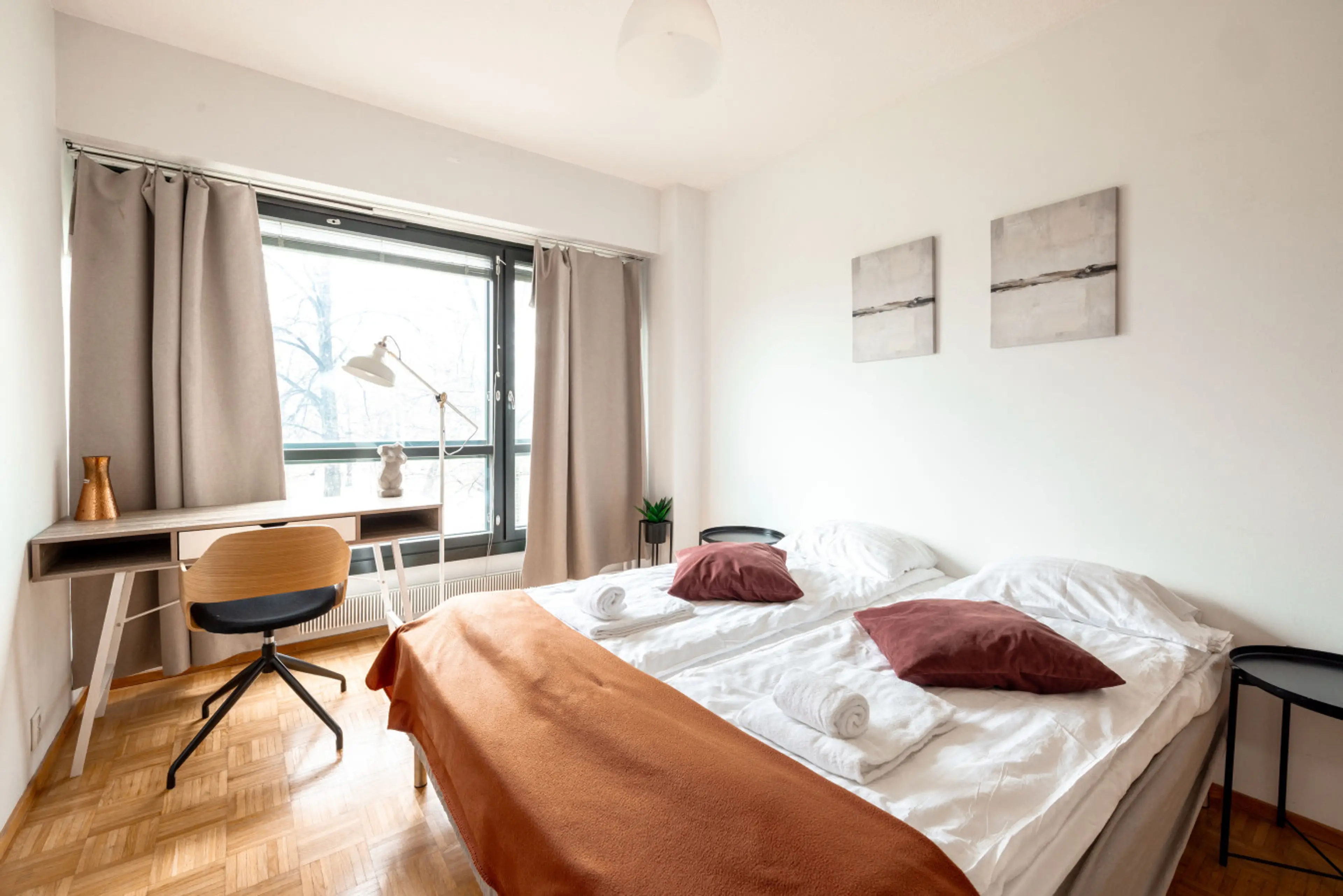 This 3 bedroom apartment is bright and spacious and also located right in the center of Helsinki, in Kaisaniemi. Sauna, balcony, 3 spacious bedrooms with great storage space for clothes, big windows in the living room and a kitchen which has everything you need. The apartment is fully furnished an...